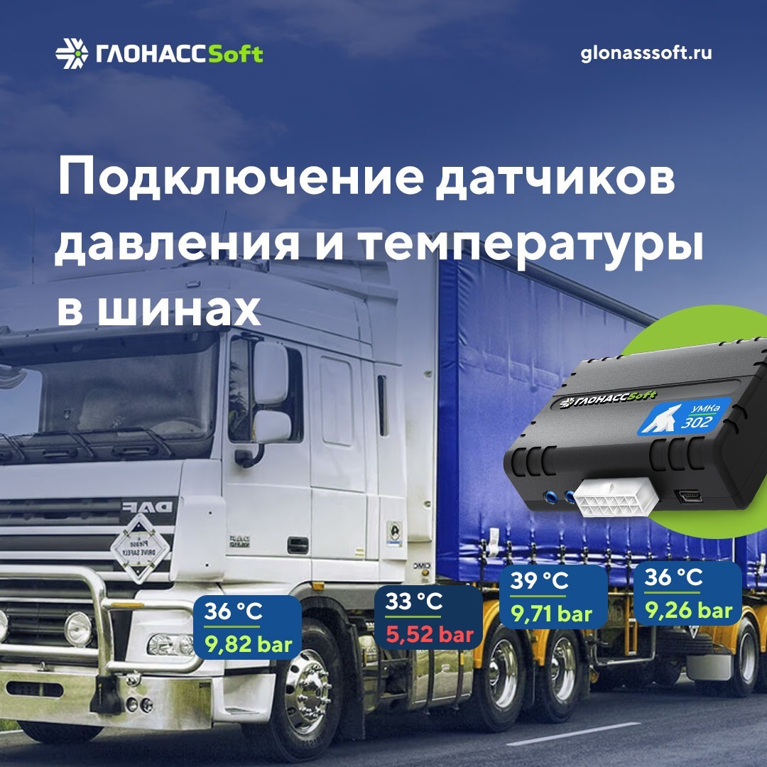 - Отслеживать параметры шин вместе с местоположением, скоростью, маршрутом и другими метриками;